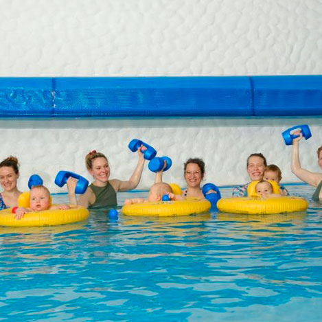 Aquafitness ist eine der besten Sportaktivitäten im ersten Jahr nach der Geburt. Alle Bewegungen können durch den Wasserwiderstand sanft ausgeführt und die Intensität der Übungsausführung individuell gesteuert werden.
